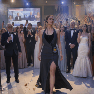 The chandeliers threw warm light across a ballroom that smelled like roses and expensive planning. I stood in a simple black dress near…