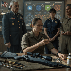 The armory at Camp Liberty sounded like a hundred small clocks—bolts easing forward, springs settling, metal catching a thin smear of oil and…