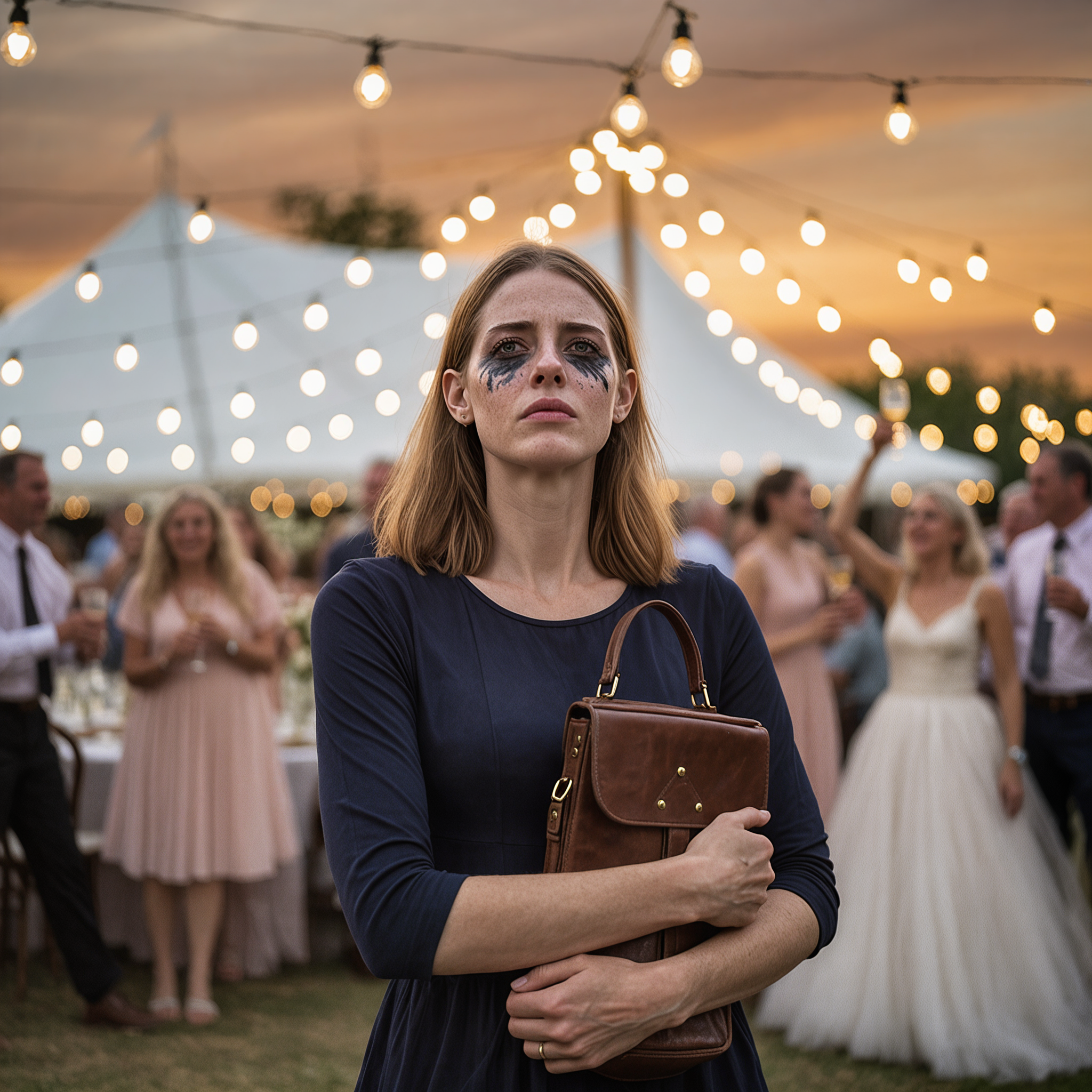 The string lights above the wedding tent blurred through my tears as I stood at the edge of the dance floor, clutching my worn handbag to my chest like a shield. Inside it was everything I had—three years’ worth of savings scraped together from working two jobs, pulling endless night shifts, and skipping meals just to make rent. It wasn’t much, but it was my escape fund. It was my promise to myself.