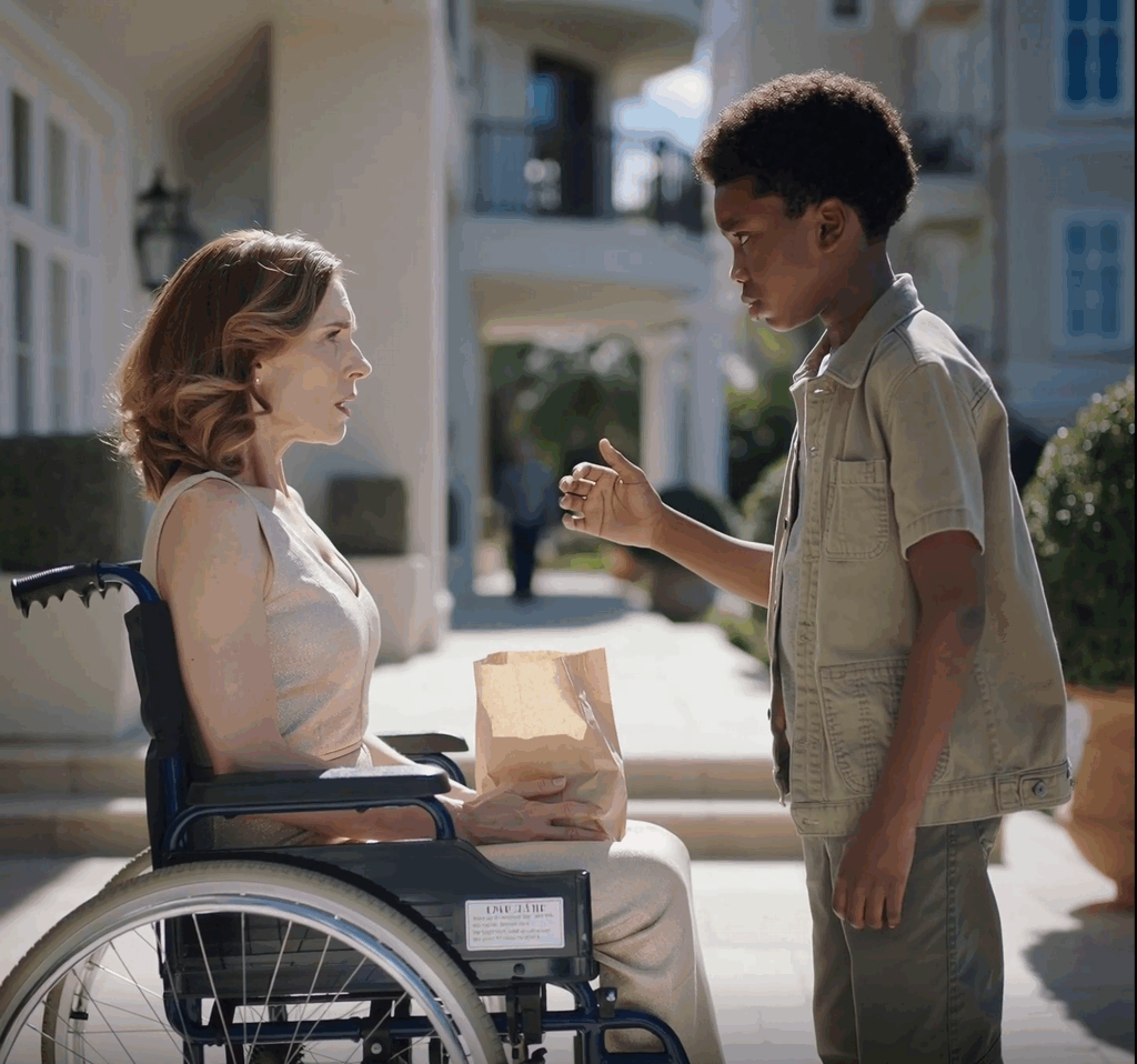 The boy cleared his throat. “I can help you get stronger. I’ve studied therapy—exercise routines, stretching, stuff that might get your legs working again. I watch videos, read books, and practice… I just can’t keep doing it if I don’t eat. Please.”
