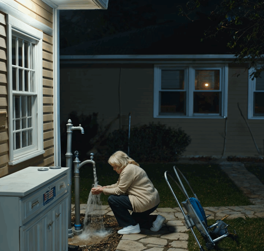Inside the house, I tested every faucet. Kitchen sink—weak dribble. Primary bathroom—barely enough pressure to brush teeth. Guest bathrooms—the same. But the outdoor spigot, the one where I’d found Eleanor kneeling like an animal, ran full pressure. It was connected to a separate line that bypassed the main valve.