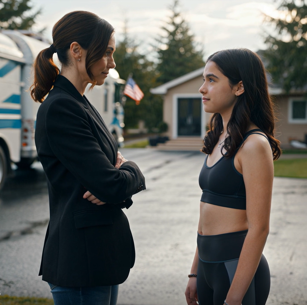 The movers had climbed back into their truck, clearly done with whatever drama was unfolding. They pulled away slowly, leaving Victoria standing alone in my driveway with her overnight bag. She watched them leave, then turned back to the camera.