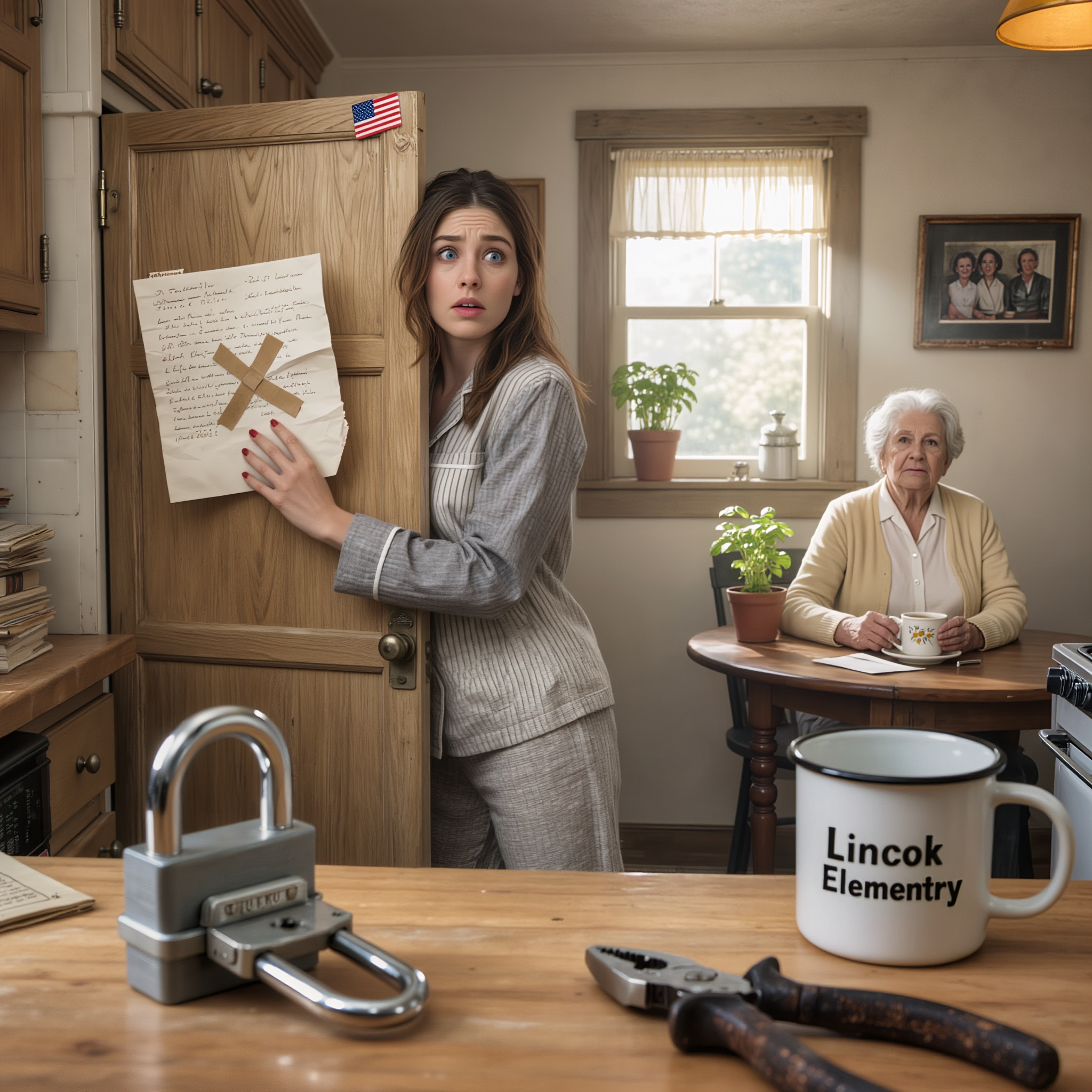 silver padlock hanging from the door of my pantry as if it were the most normal thing in the world. I froze. My purse
