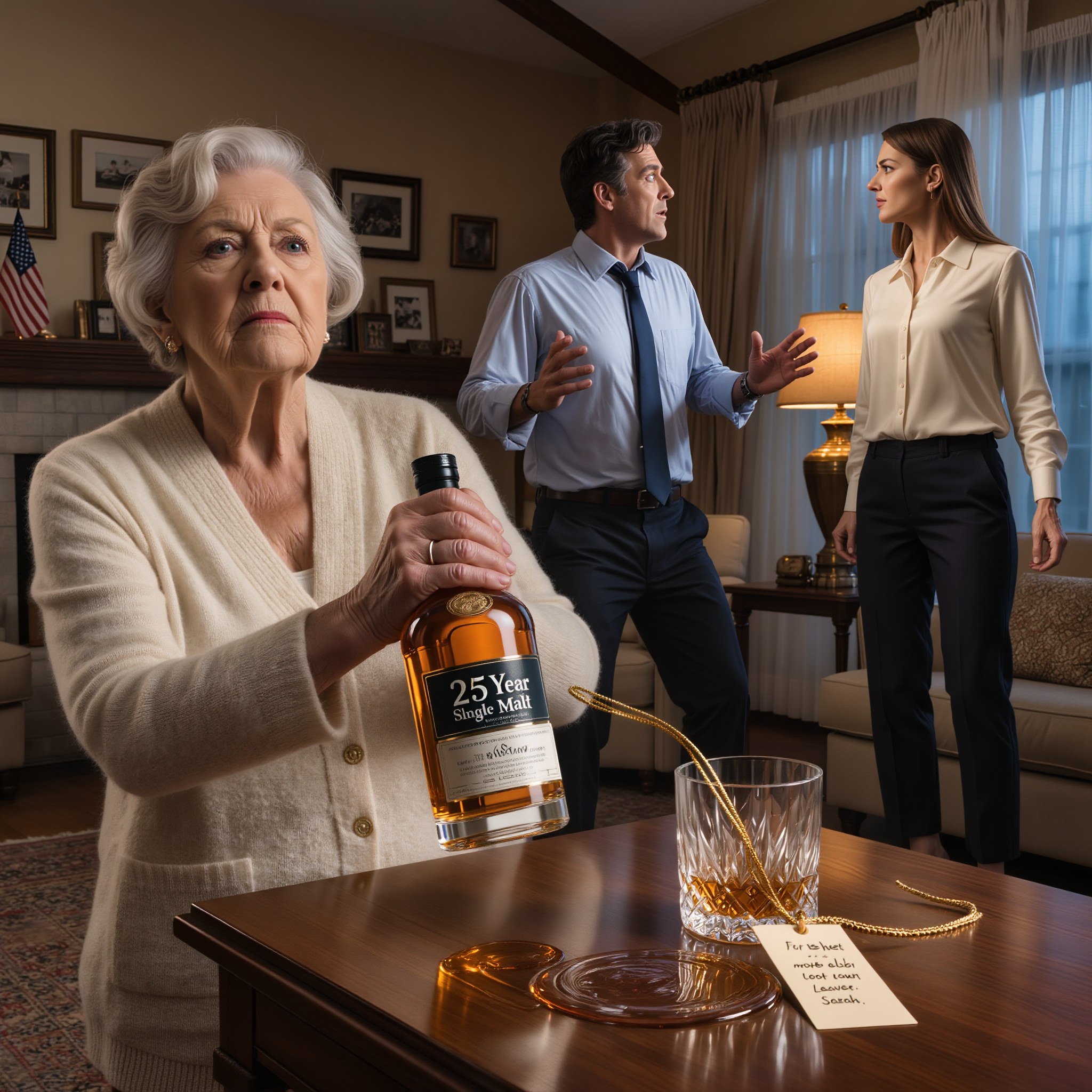 We sat there, letting the implications sink in. The expensive whiskey wasn’t a gift. It wasn’t a mistake. It was something else entirely, something that would have been meant for me to drink, something that Sarah expected I would consume without question. Maybe to celebrate receiving such an expensive gift from my thoughtful daughter-in-law.