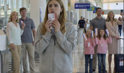 I turned my head, and there they were, not struggling at some self-check-in kiosk, not counting crumpled bills for baggage fees. They were at the first-class counter. My mom was leaning casually on a sleek suitcase, wearing a new cardigan I had never seen before and holding a to-go coffee like she did this every week. My brother stood next to her, talking to the airline agent with that confident tone he uses when he is trying to charm someone. His wife, Brittany, was snapping selfies, tilting her head just right, the kids tucked in close to her hip.