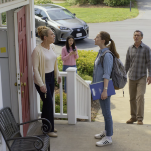 I handed her the red folder as soon as she sat down at the kitchen table.