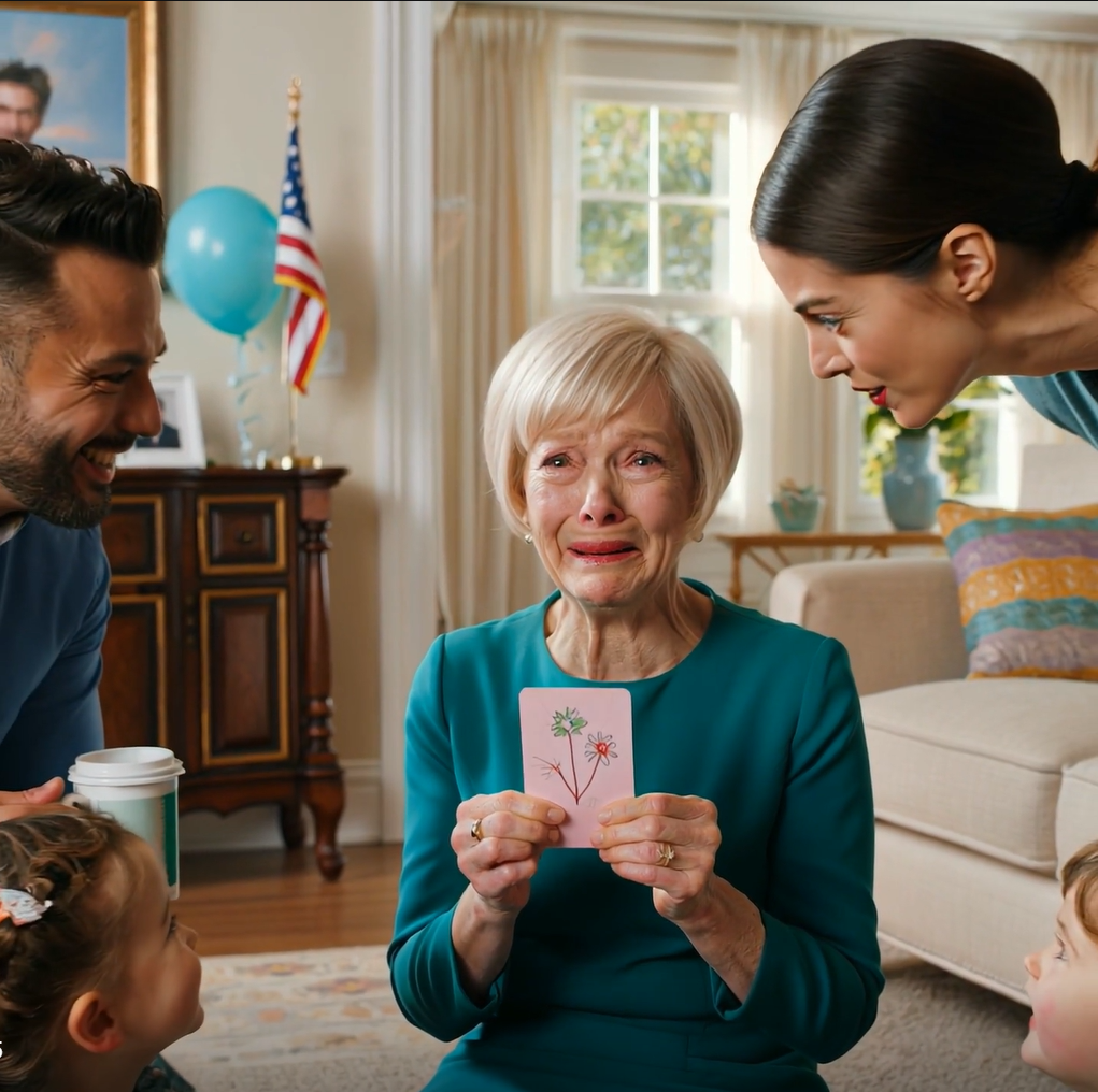 I sat on the couch, surrounded by my family. The grandchildren settled at my feet, expectant. Sarah pulled a pink card from her purse and handed it to me.
