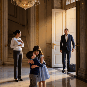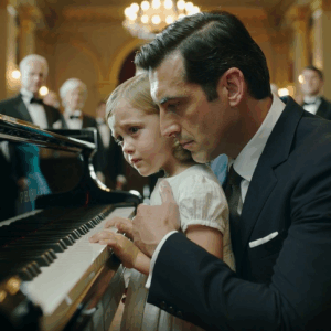The ballroom was filled with laughter, golden chandeliers throwing glittering light across marble floors. In one corner stood a little girl, small and…